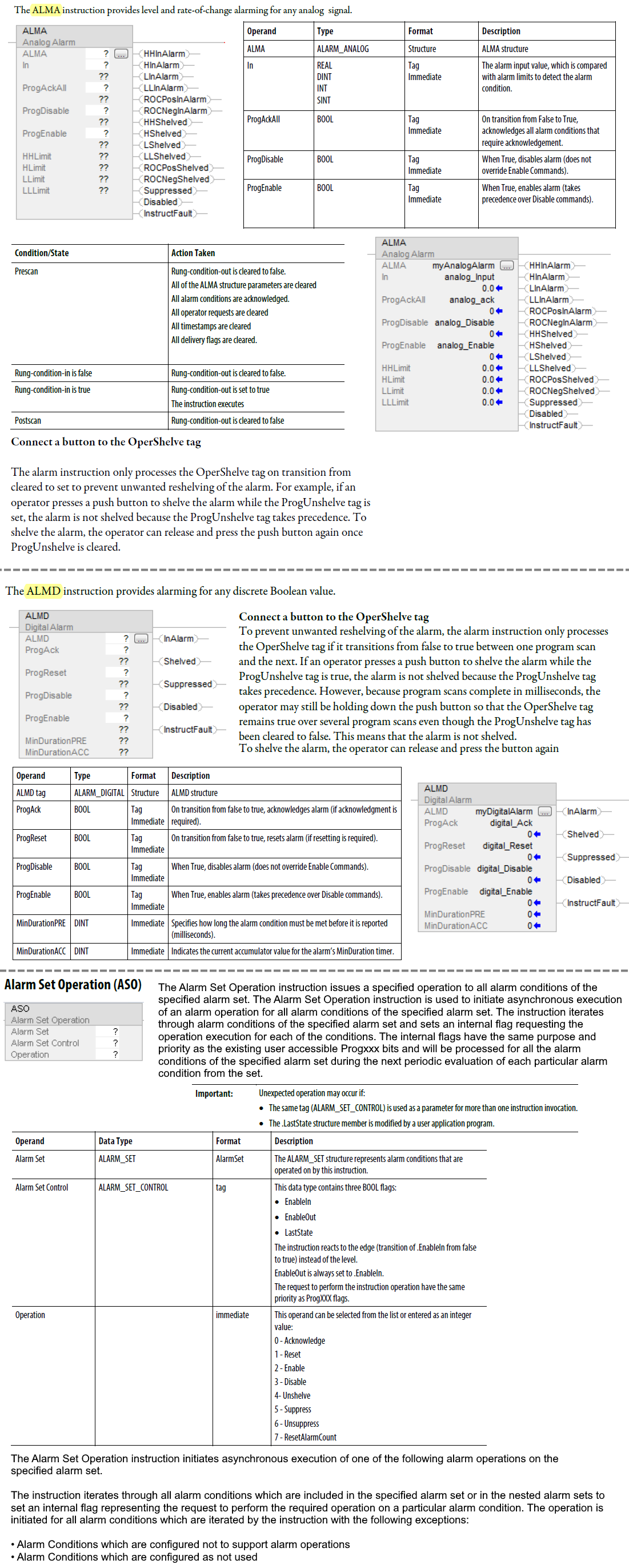 | Alarm Instructions | Alarm Set Operation ASO | Analog Alarm ALMA |