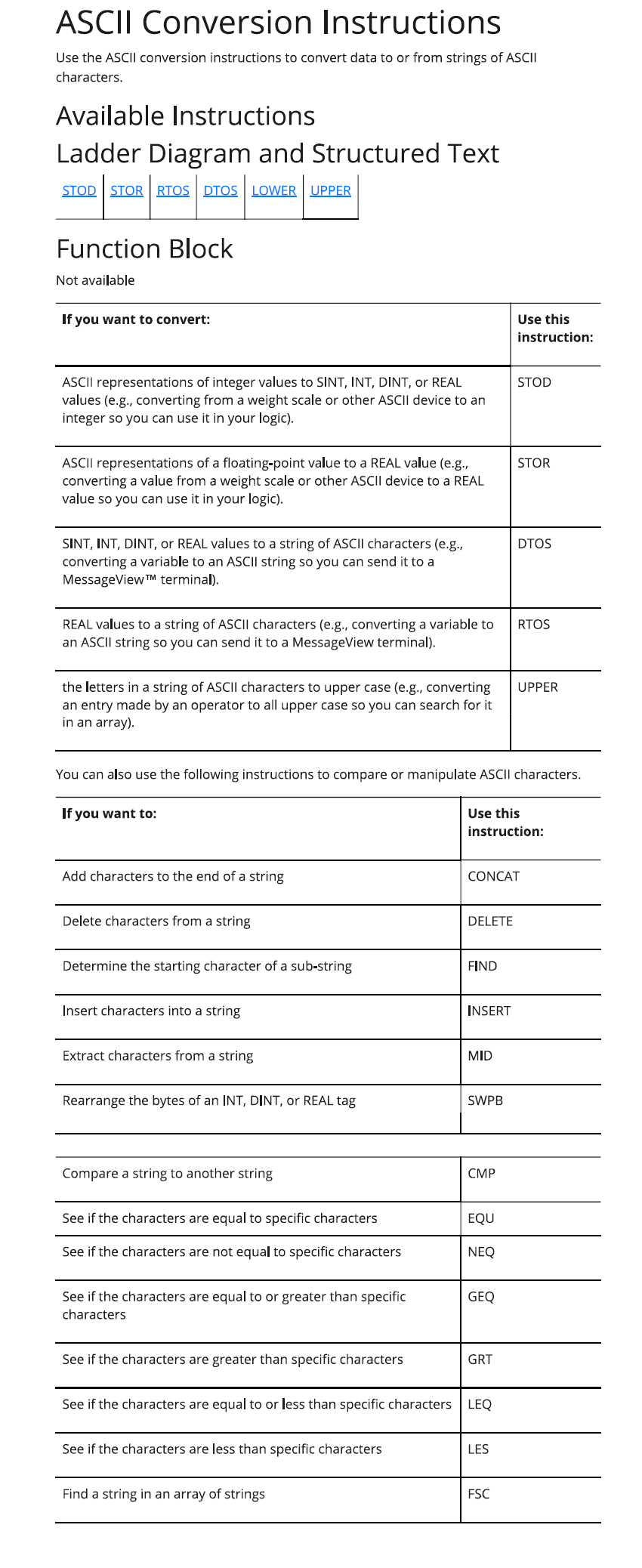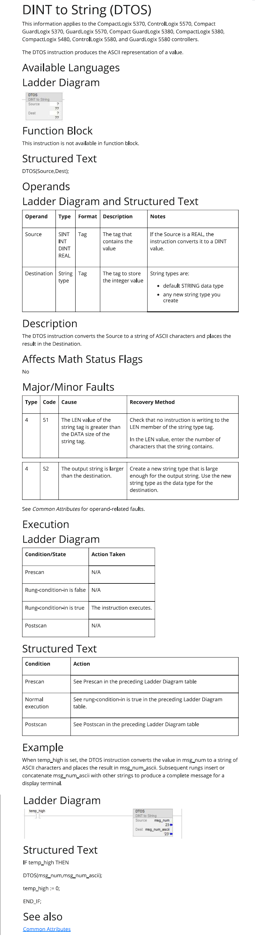 | Elementary Data Types | Data Conversions | ASCII Conversion Instructions | DINT to String |